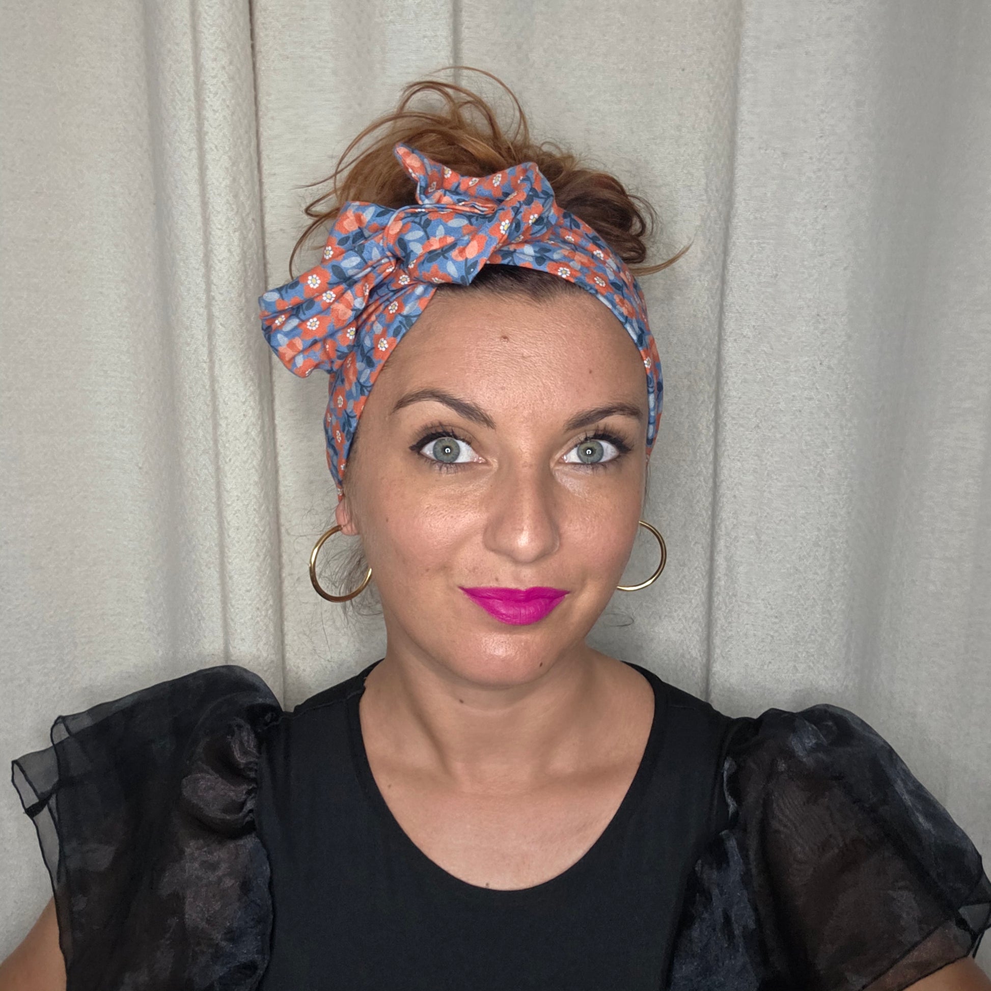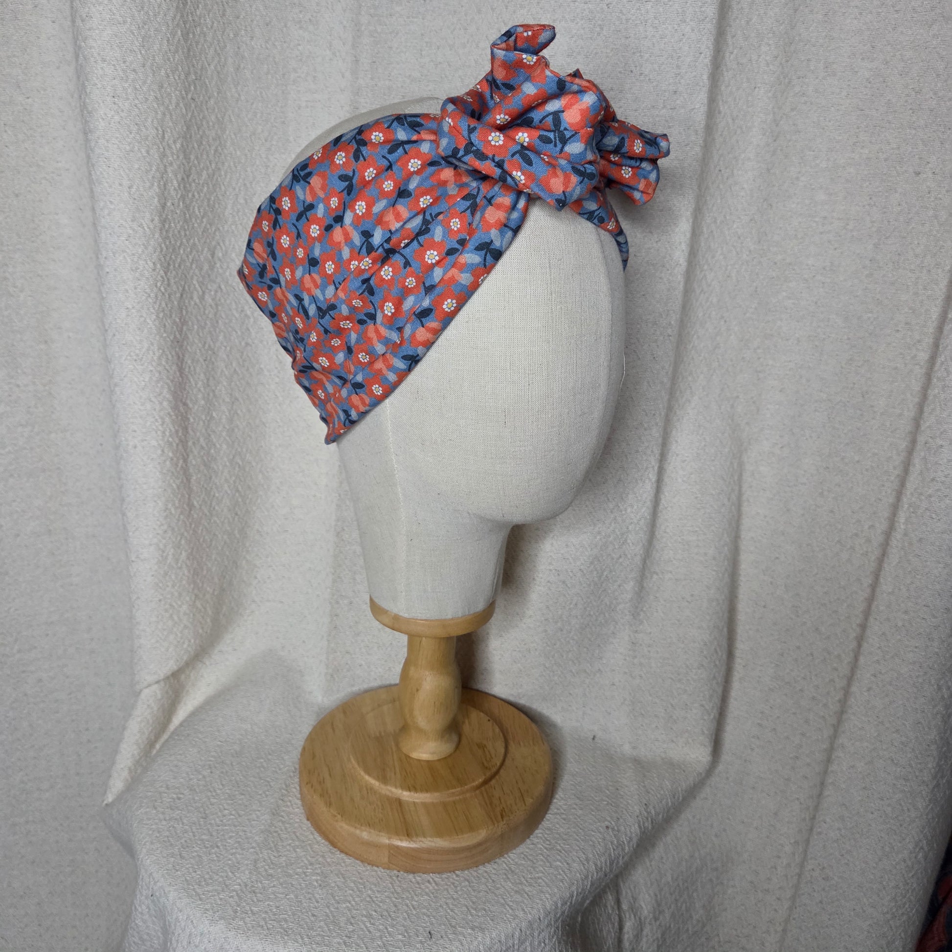 Tissu coton fleuri bleu et rouge